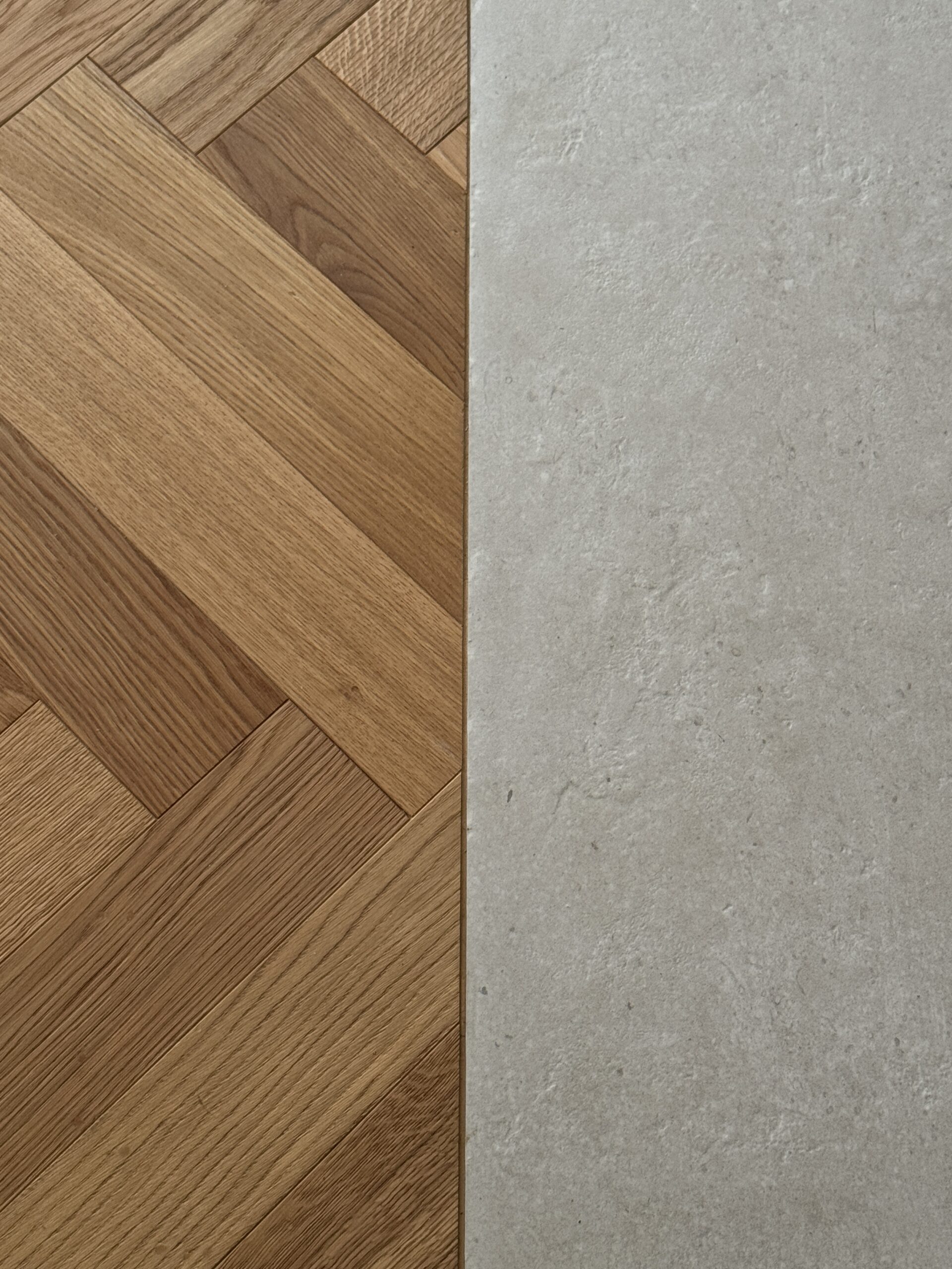 Realizace pokládky třívrstvé dřevěné podlahy ve vzoru stromeček v rodinné vile.