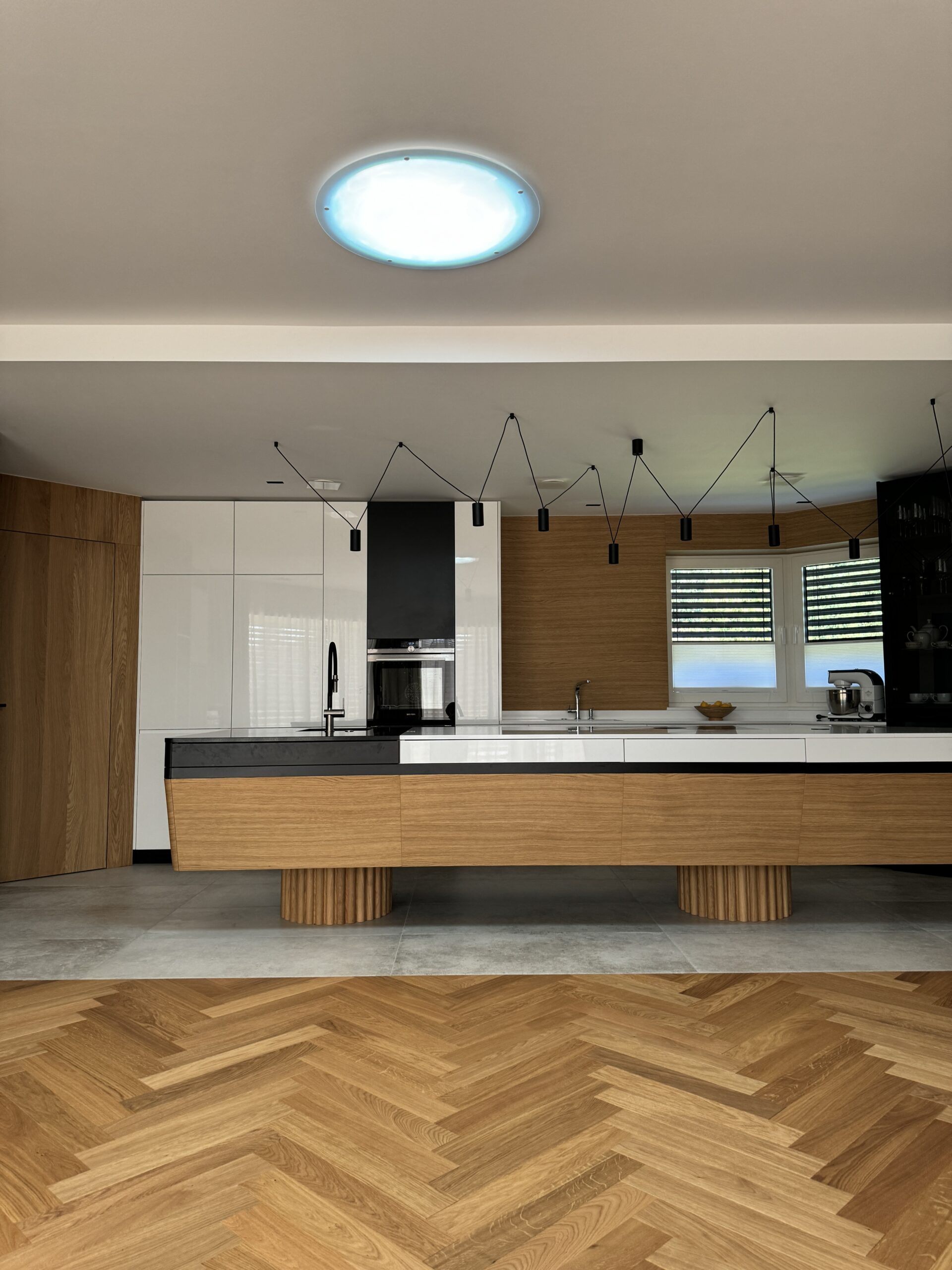 Výsledek tvoří harmonický, nadčasový a prvotřídně řemeslně zpracovaný interiér.